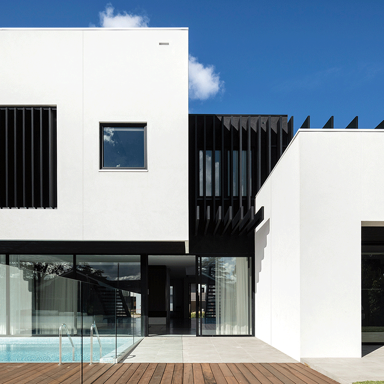 A language of light in architcctural form. With its high-gloss mirror finish, the lextures scem to float, expanding the space and sharpening its contours.