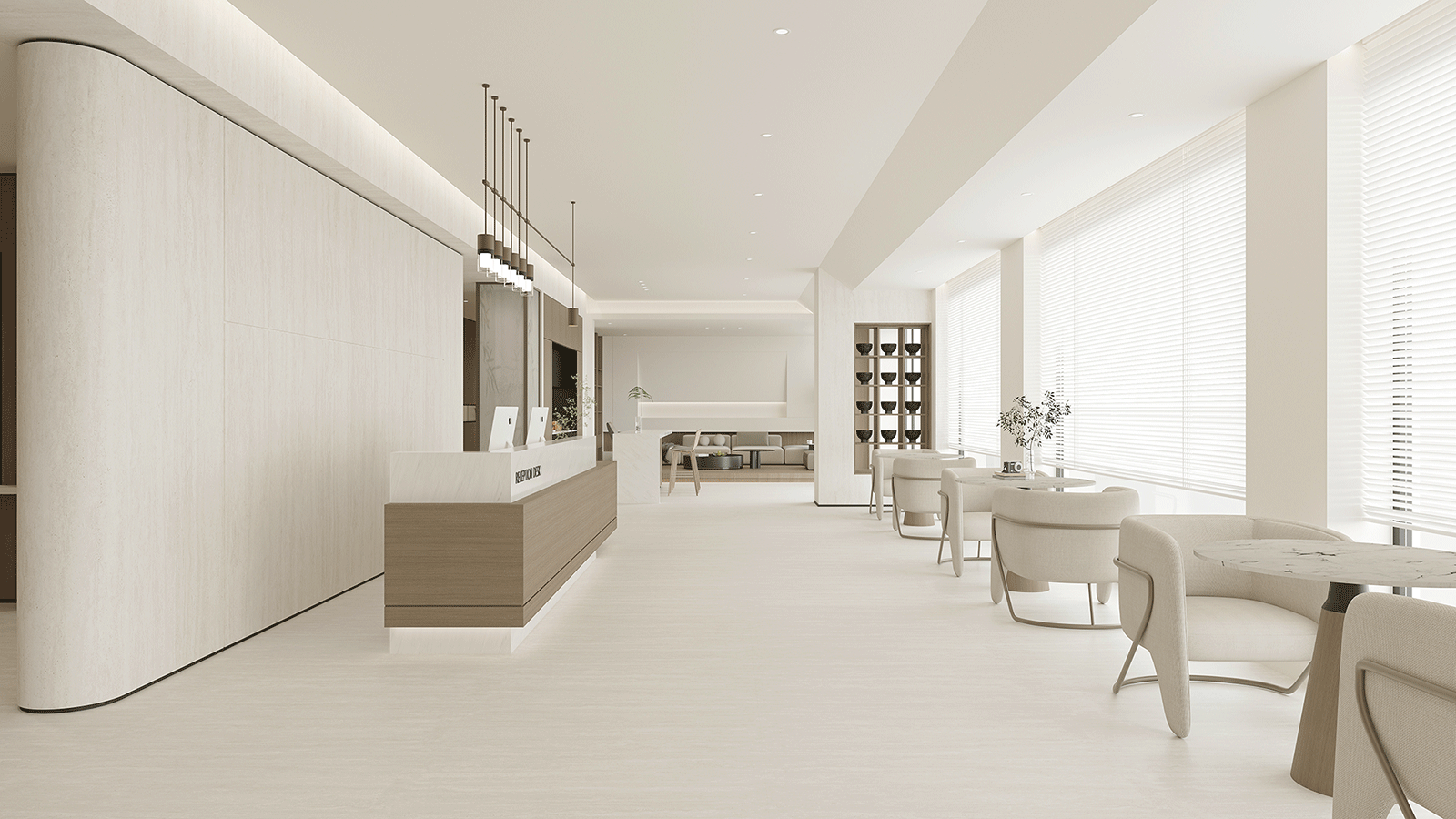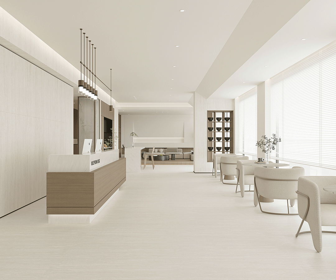 Derived from Italian Travertino, the light and elegant base color interprets a sense of natural beauty, gentle and versatile textures embody an elegant style.