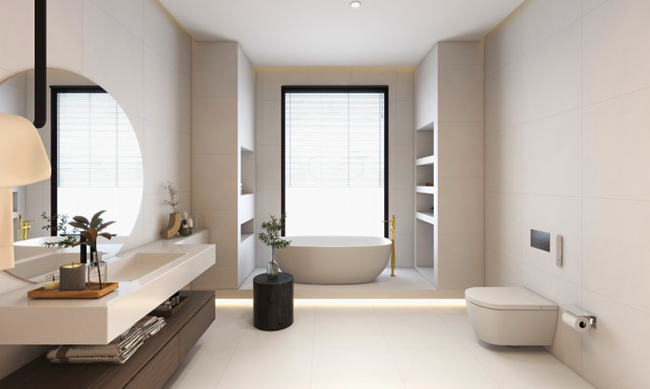 A language of light in architcctural form. With its high-gloss mirror finish, the lextures scem to float, expanding the space and sharpening its contours.