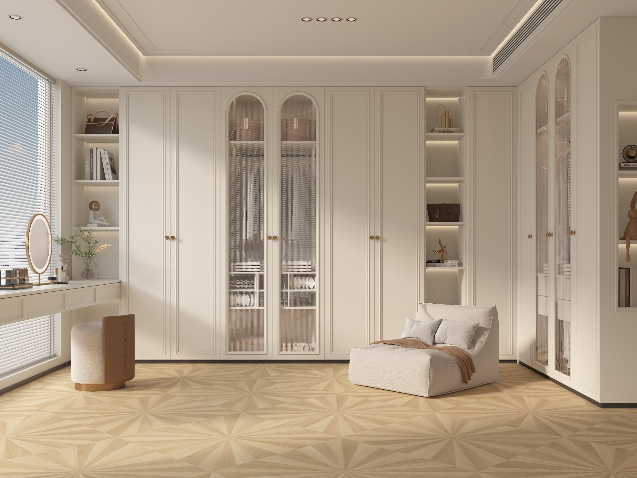 A language of light in architcctural form. With its high-gloss mirror finish, the lextures scem to float, expanding the space and sharpening its contours.