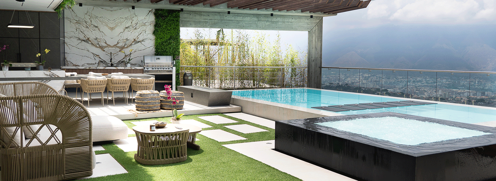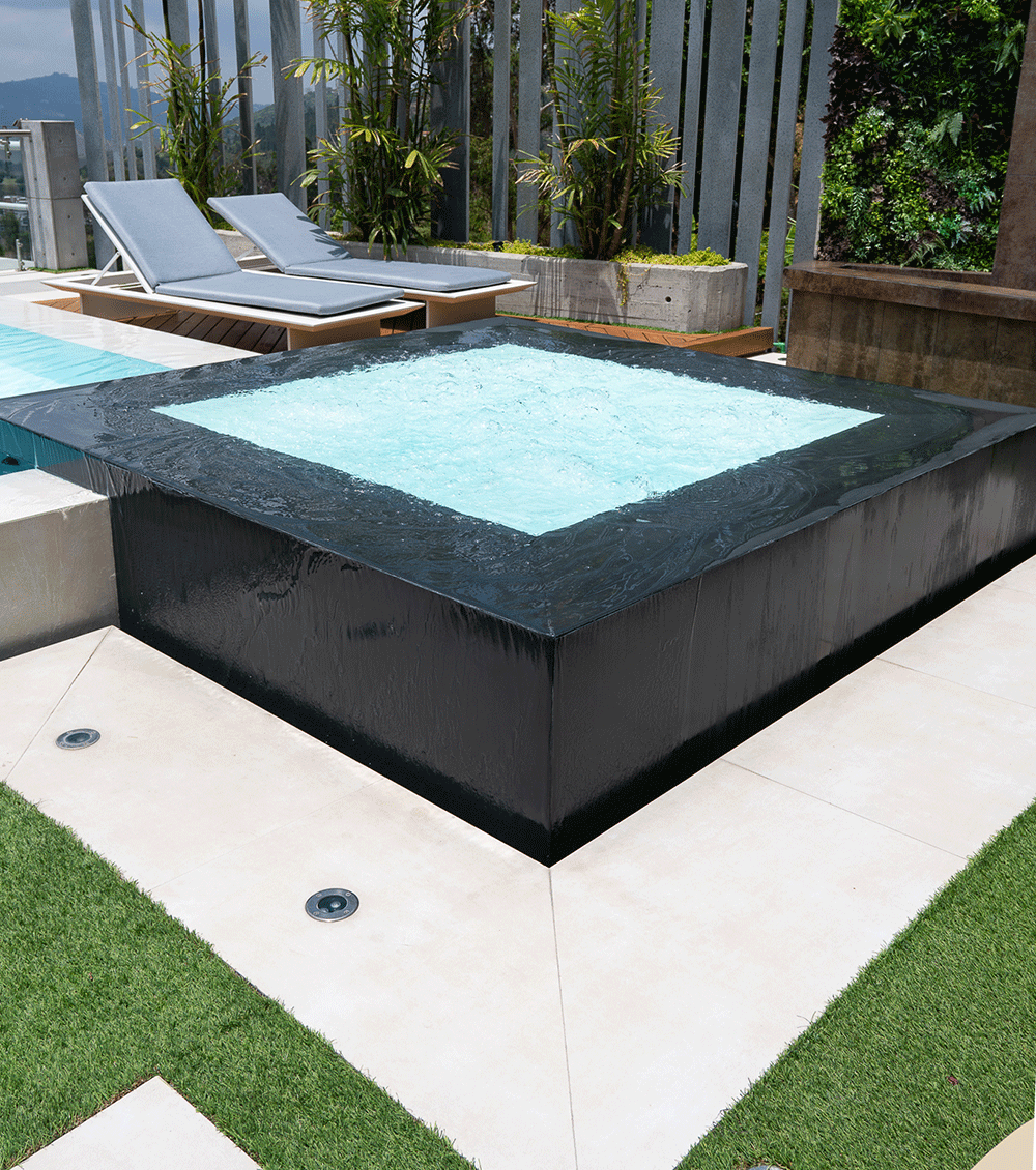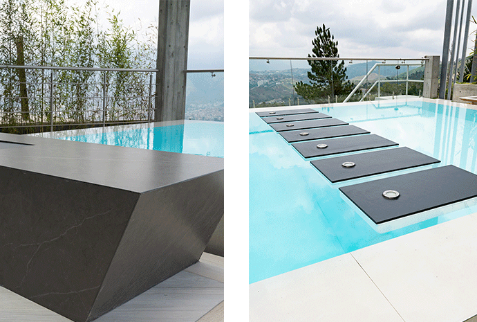 The outdoor slabs are UV-resistant and weatherproof, making them ideal for open-air environments. Through integrated wall and floor installation, we blend natural greenery with architectural lines, achieving a design that harmonizes architecture with nature. This interprets the modernist style of terraces that embody the essence of “finding nature amidst the bustling city,” ensuring that every inch of space reflects a sense of refined design.