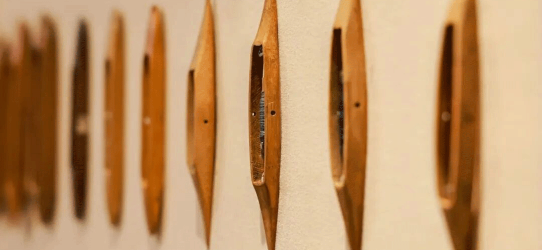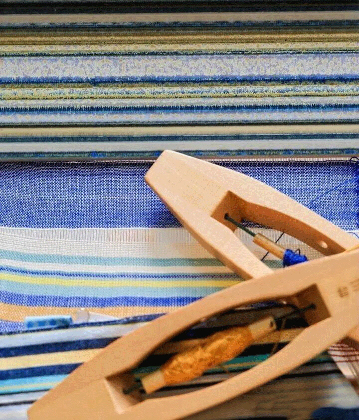 Во время практического занятия по ткачеству участники использовали шаттл и нить в качестве средств, касаясь руки мастера, которая преодолевает время и пространство.